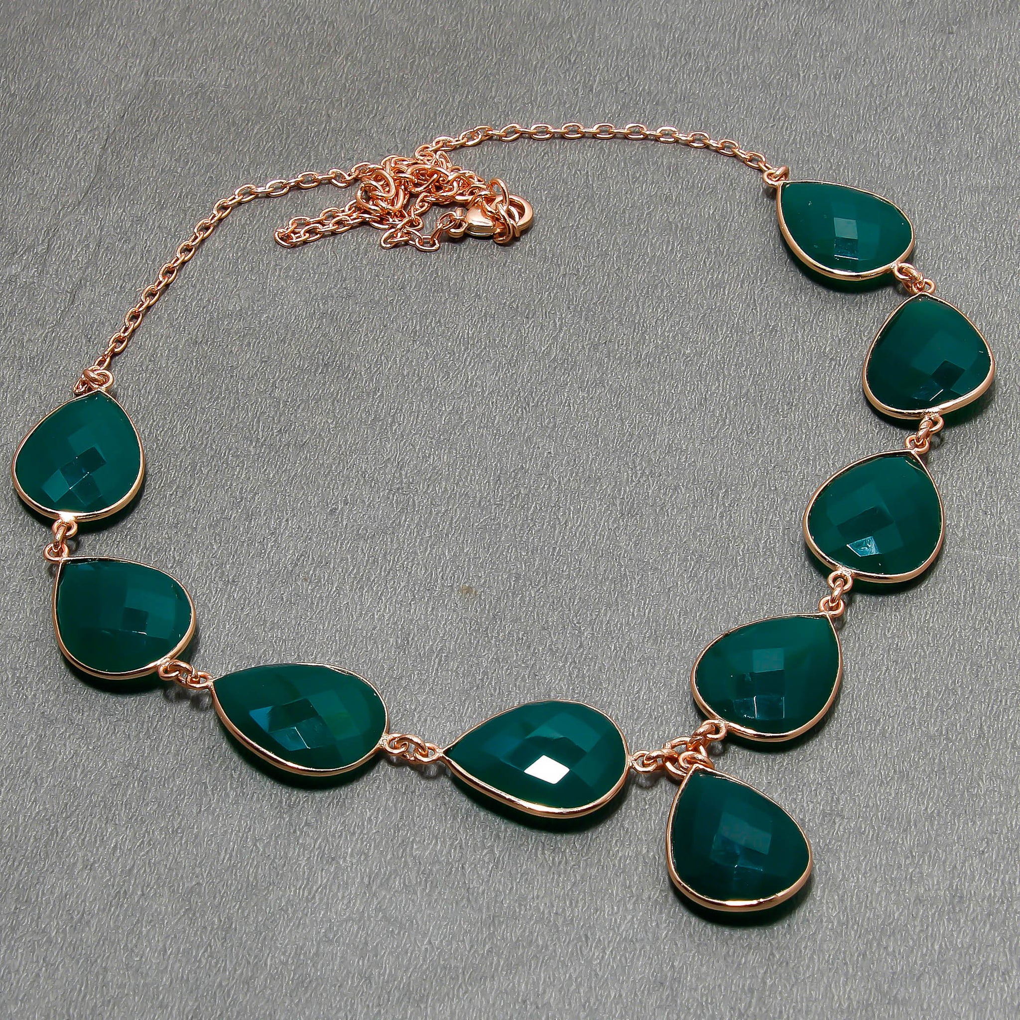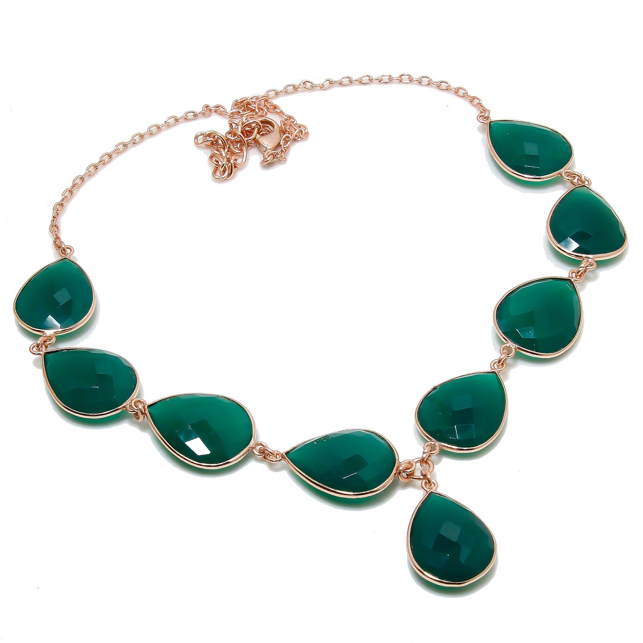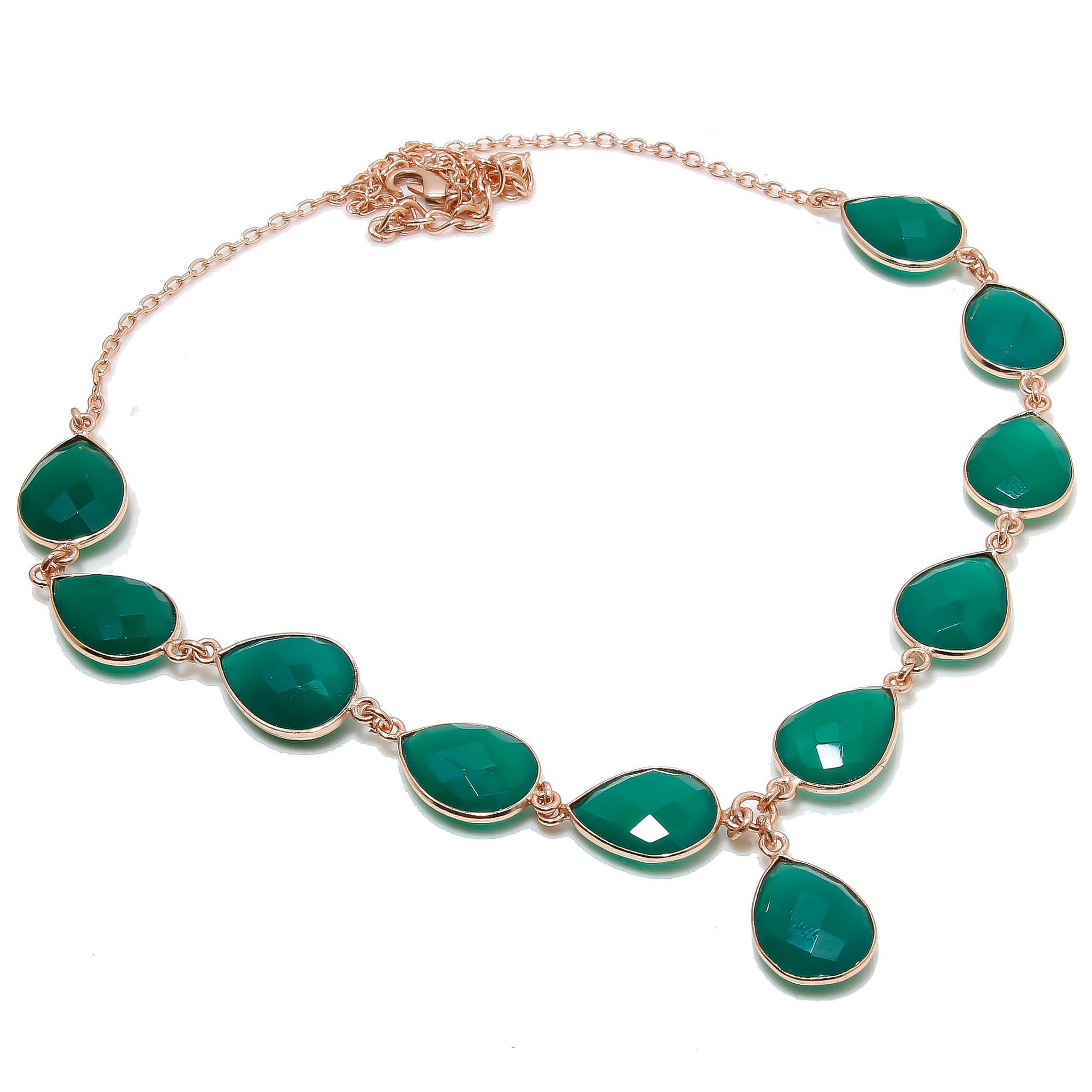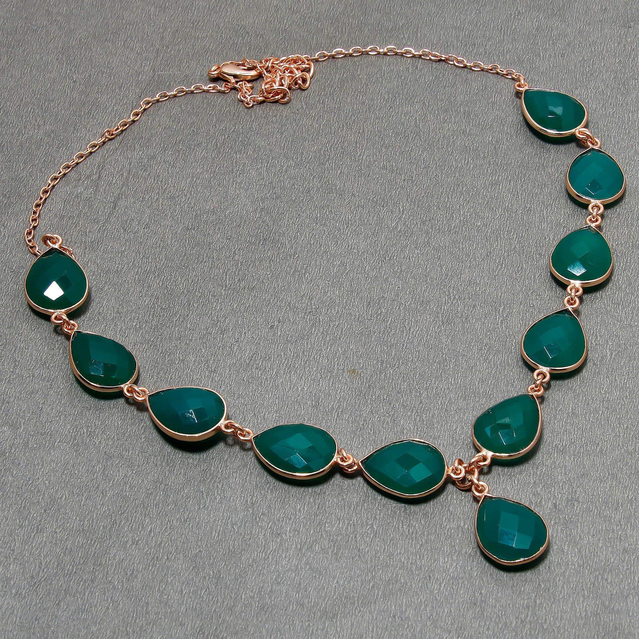 Natural Green Onyx Necklace | 925 Sterling Silver Adjustable Chain | Bezel Setting Necklace | Rose Gold Plating | May Birthstone