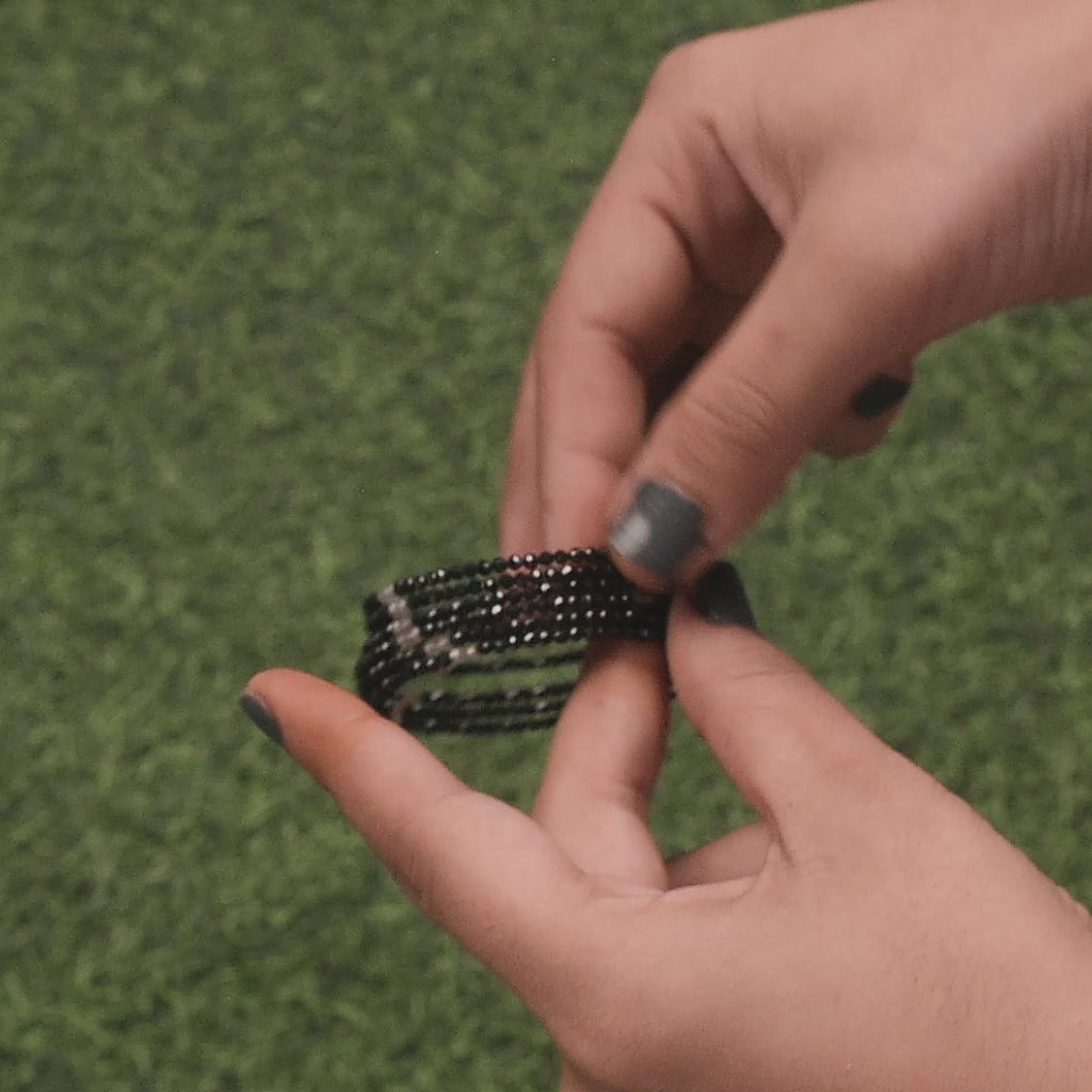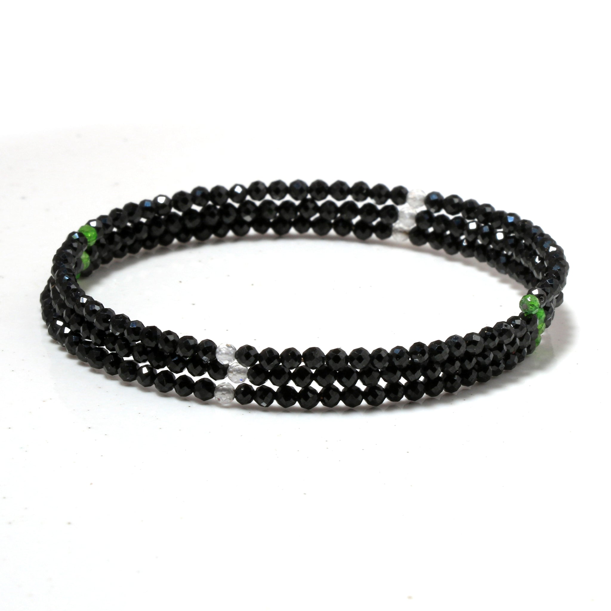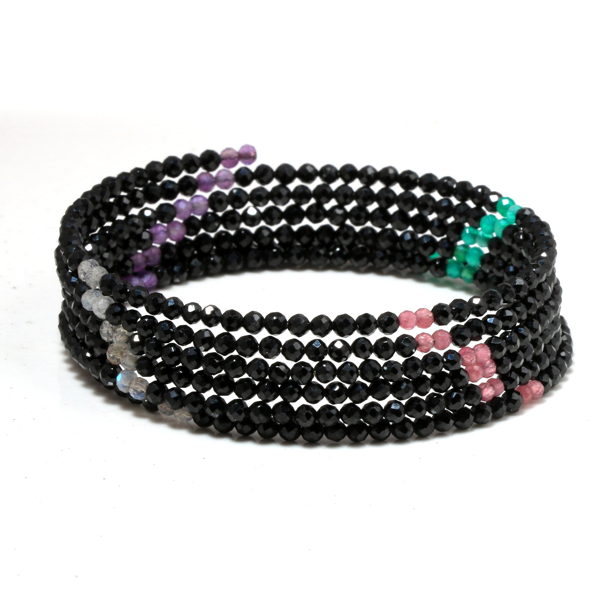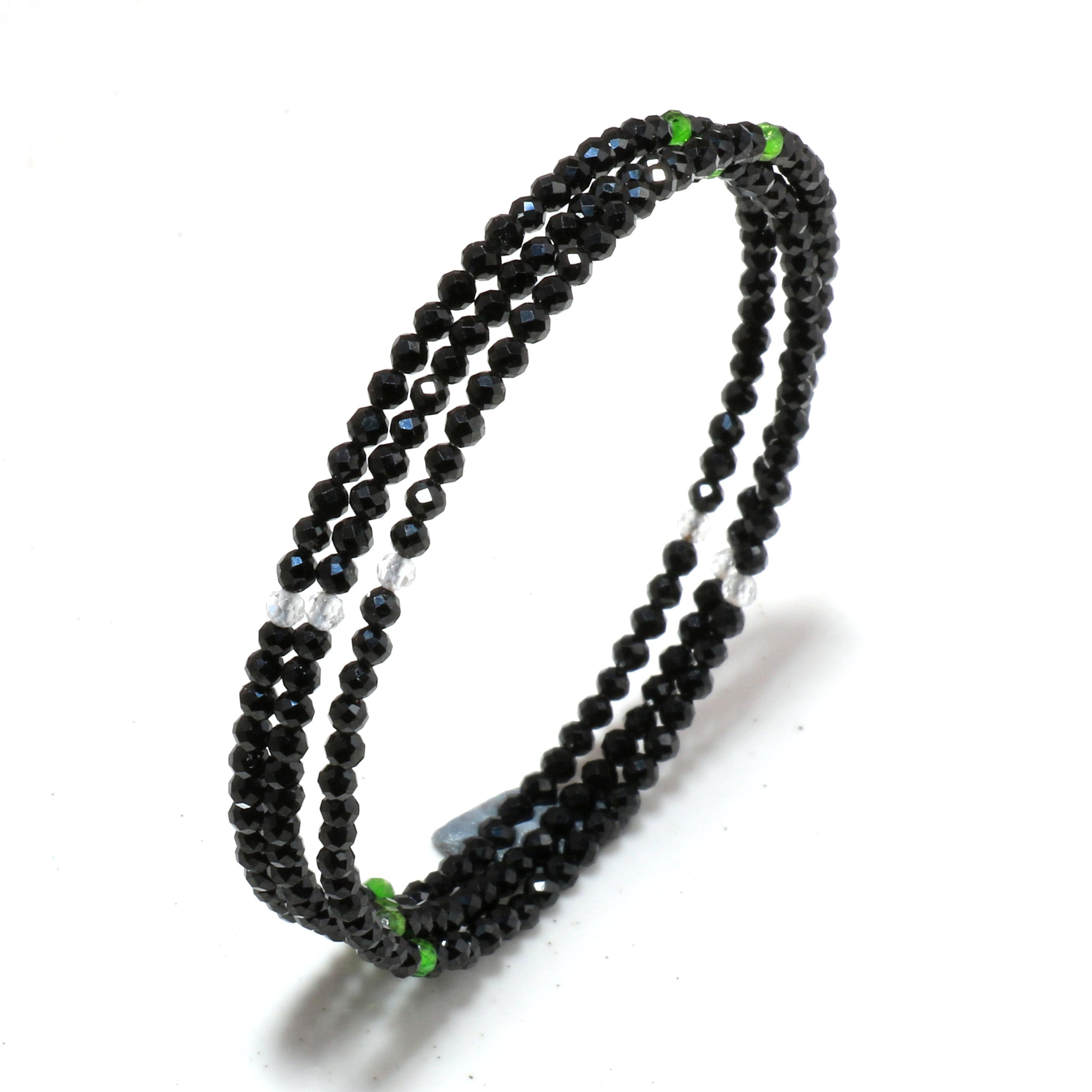 Natural Black Spinel Beaded Spring Bangle | Black Spinel 6 Layer Bangle | August Birthstone | Everyday Jewelry