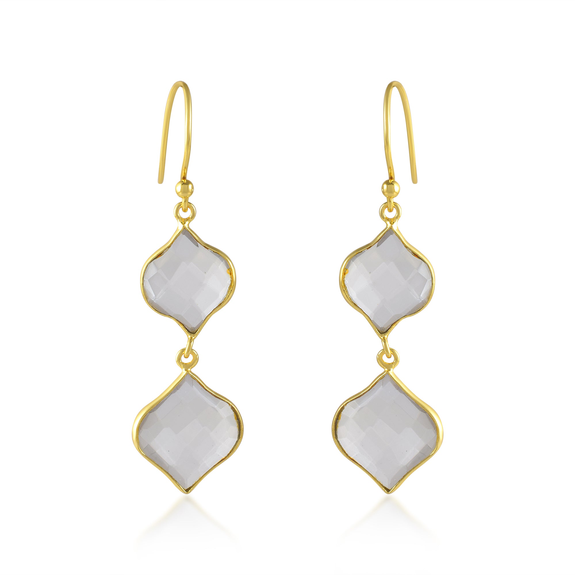 Natural Clear Quartz Dangle Drop Earrings | 925 Sterling Silver Fine Jewelry | Gold Plating Earrings | April Birthstone