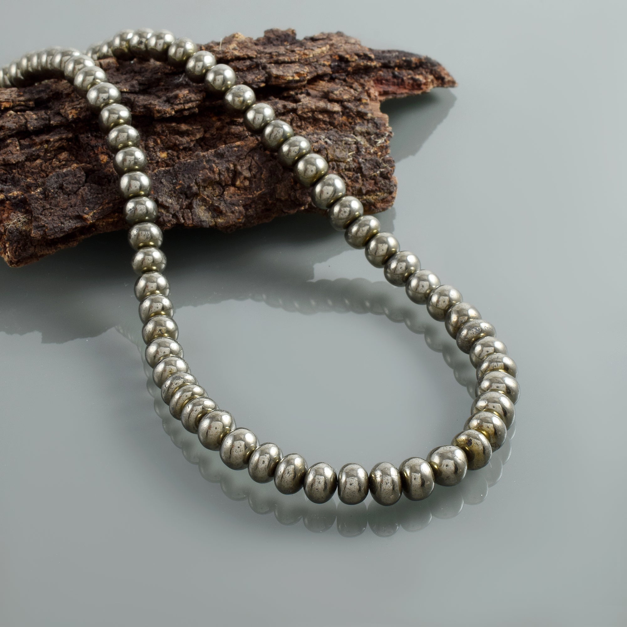 Natural Pyrite Gemstone Plain Bead Necklace & Bracelet | 925 Sterling Silver Fine Jewelry | Root Chakra Healing Power | Birthstone Gifts