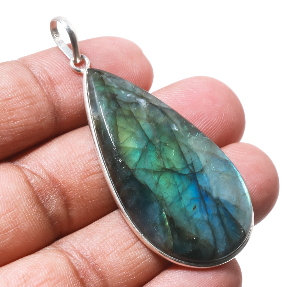 Natural Dark Gray Labradorite Pendant Fine Gemstone Pendant