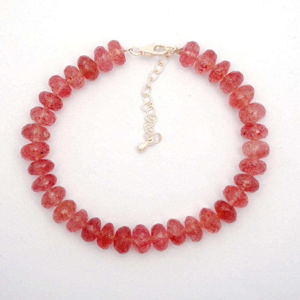 Strawberry Quartz Gemstone Beaded Silver Bracelet April Birthstone Jewelry For Emotional And Enhances Love