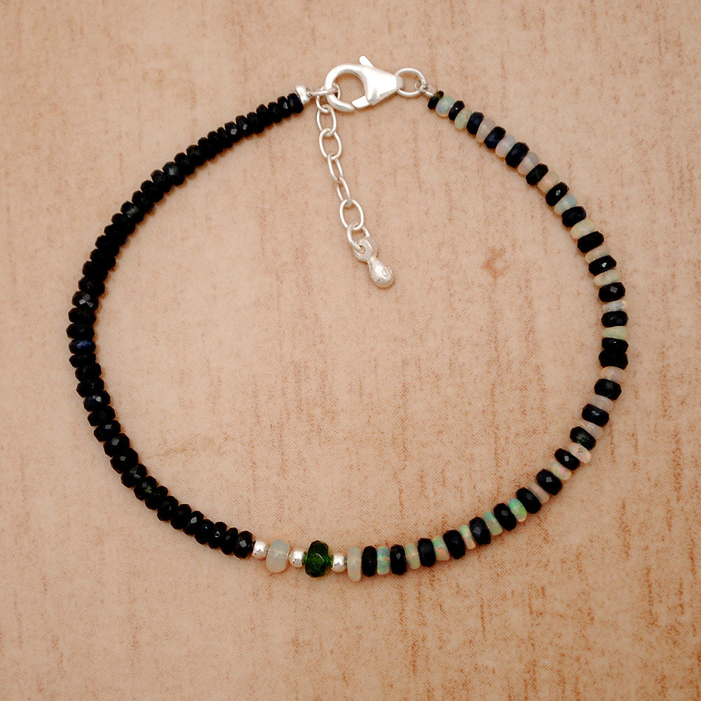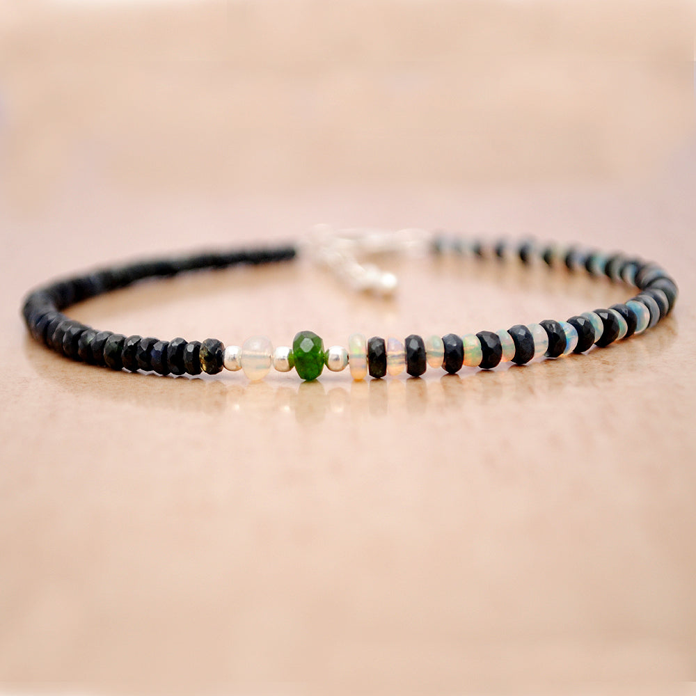 Black Tourmaline Gemstone Beaded Silver Bracelet October Birthstone Jewelry For Negative Energy Absorption And Reduces Stress