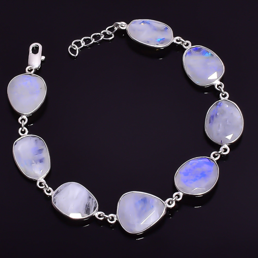 Rainbow Moonstone Gemstone Silver Bracelet June Birthstone Jewelry For Inner Growth